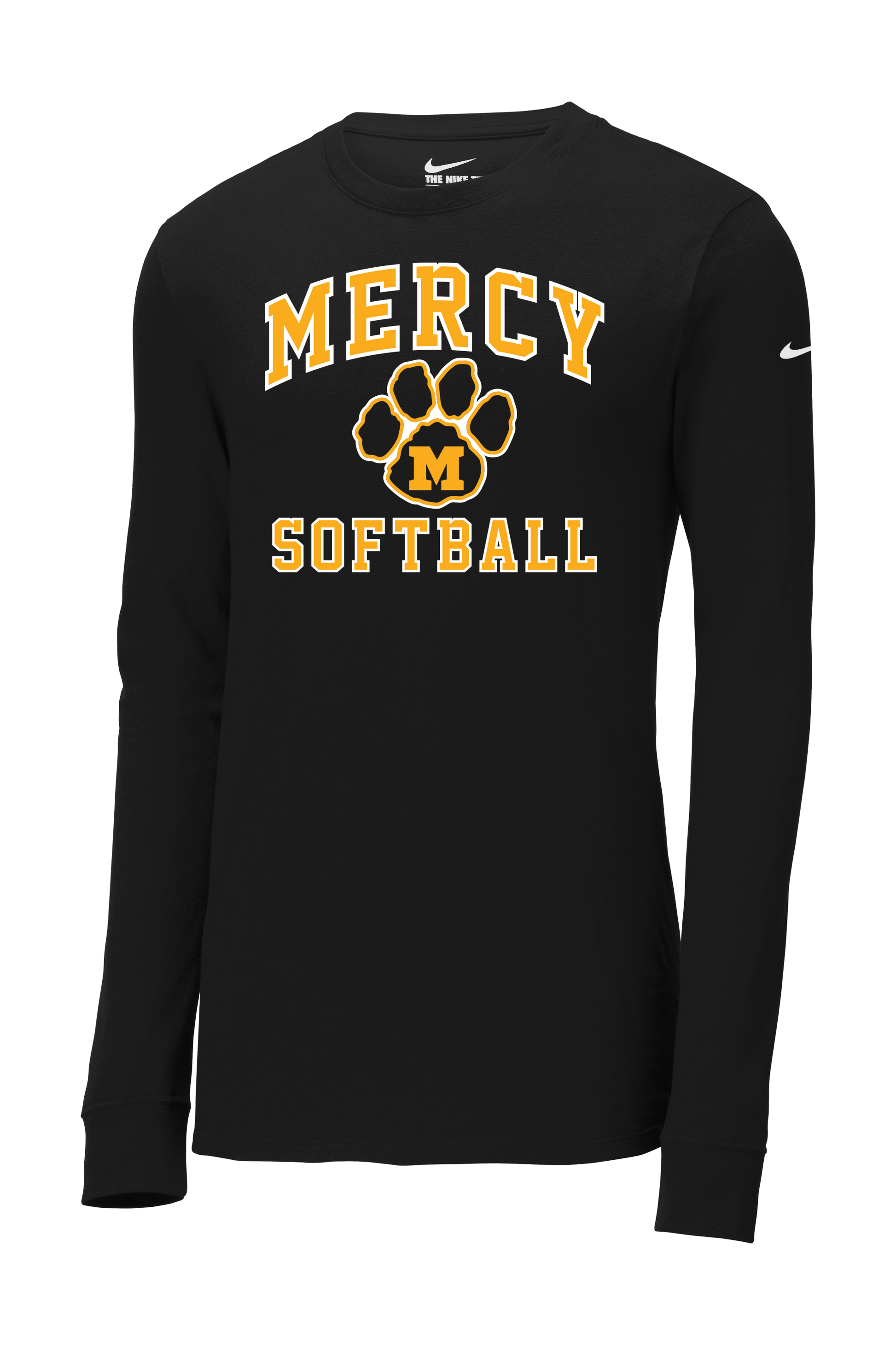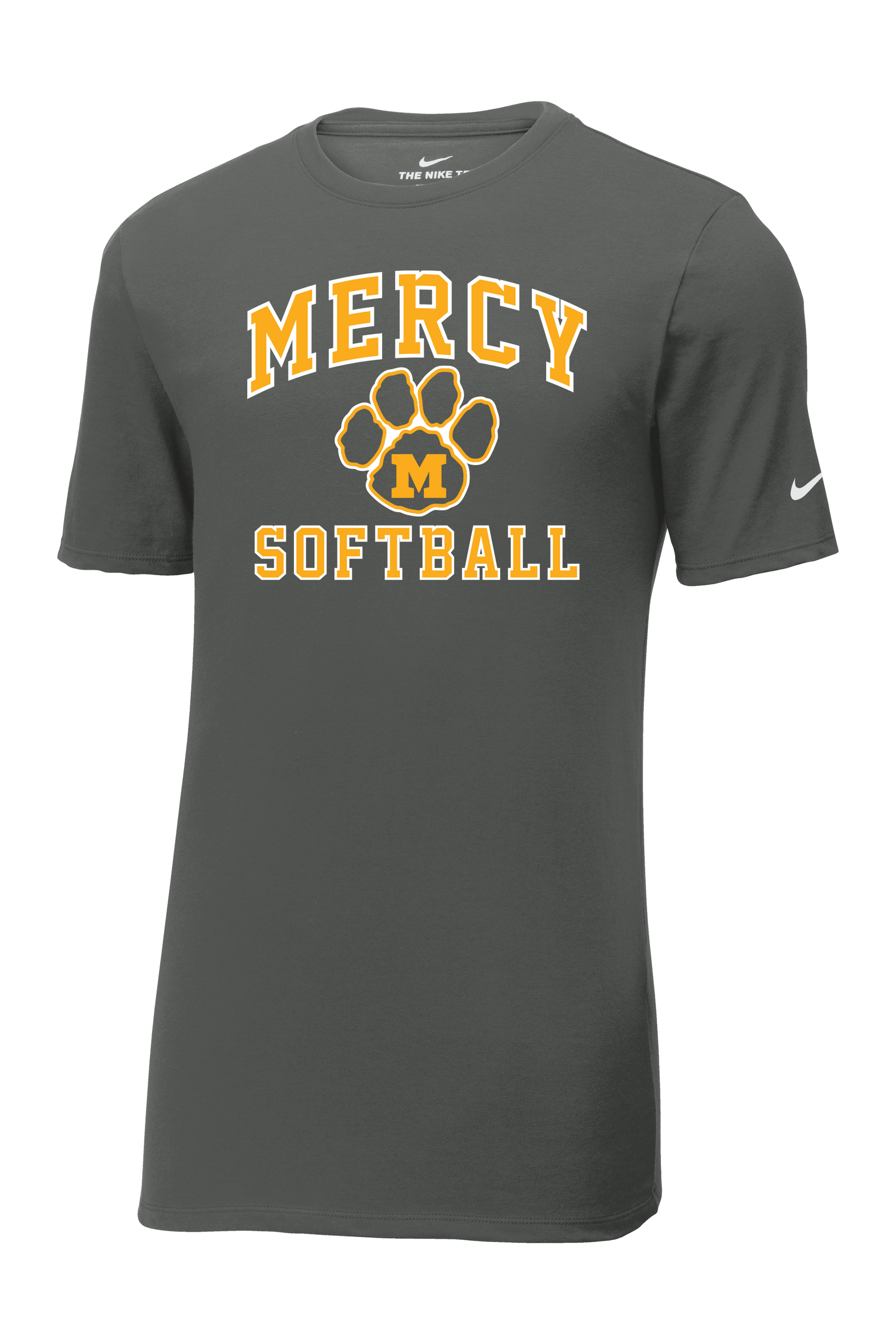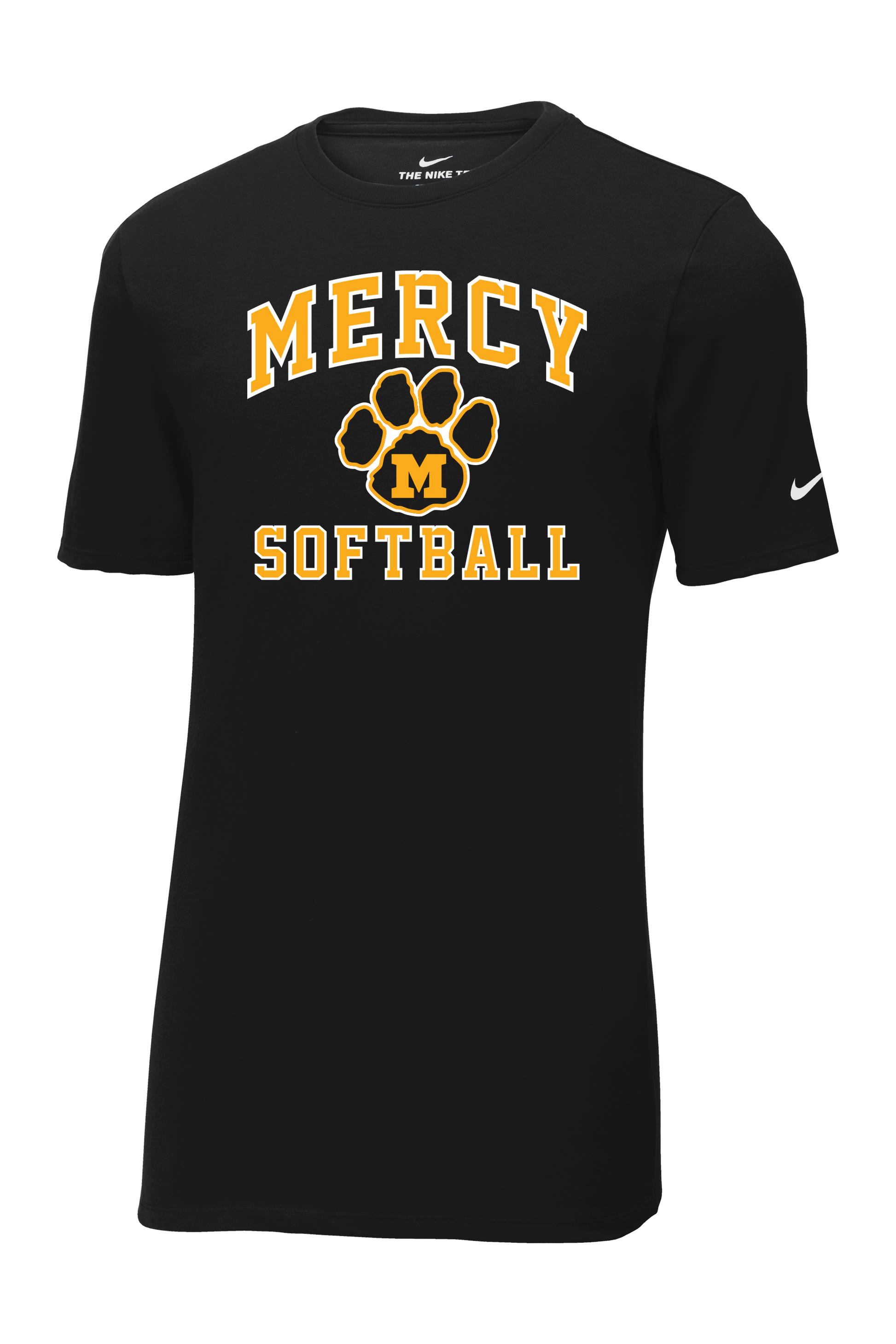 Dominate the diamond in the Mercy Softball Nike Dri-FIT tee, engineered for peak performance when it matters most. The advanced 60/40 cotton-poly blend with Dri-FIT technology pulls sweat away from your skin, keeping you cool and focused through every inning. Built tough with double-needle stitching and a reinforced rib knit crew neck, this tee handles the demands of competitive play. The tagless heat transfer label eliminates irritation, while the iconic Swoosh heat transfer on the left sleeve delivers that unmistakable Nike look. Whether you're training hard or game day ready, this performance tee is your reliable teammate.